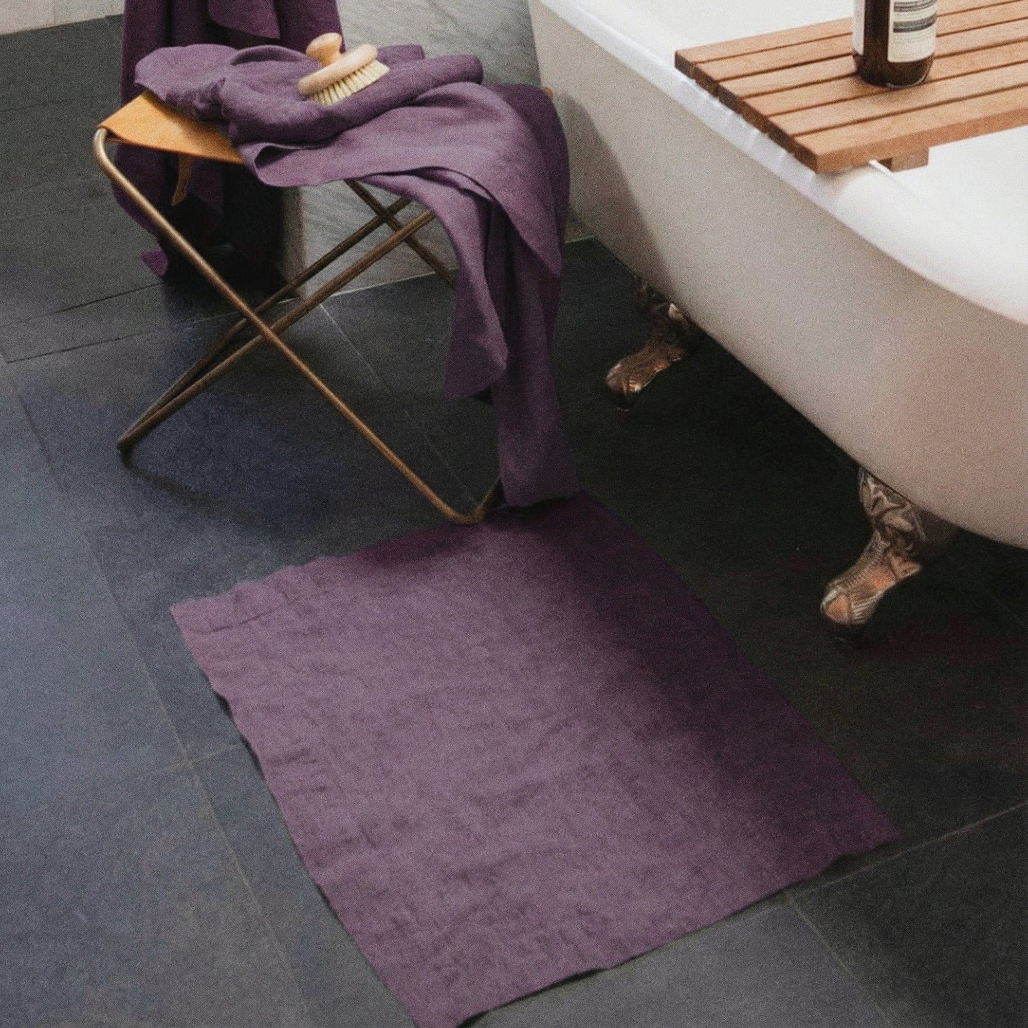 Linen is exceptionally absorbent and stays fresher because it dries quickly and is inherently anti-microbial. Our bath mat is double-thickness, yet dries faster than a terry weave. It is comfortable and dry underfoot, and has a 2” hem all round with mitered corners.