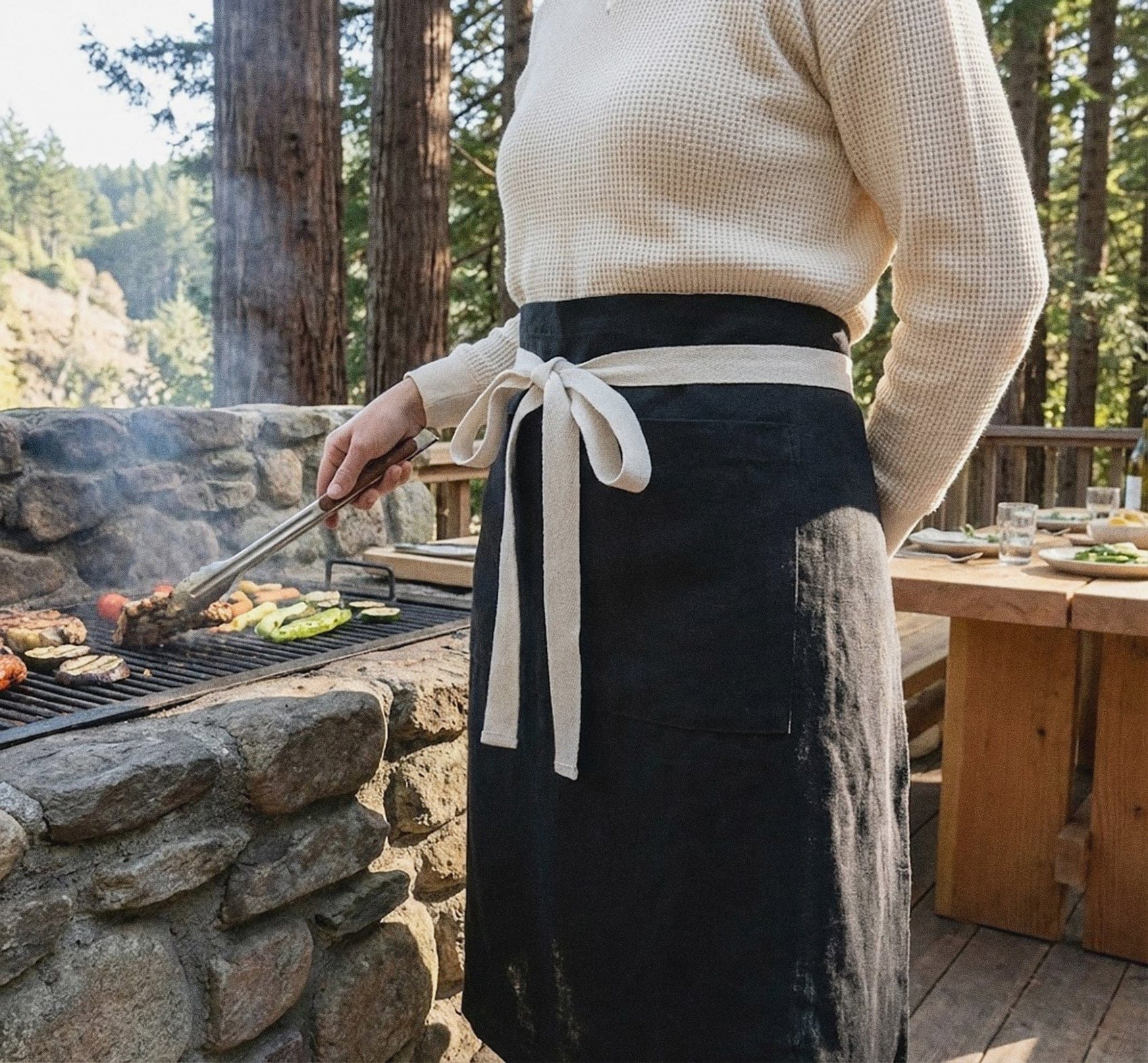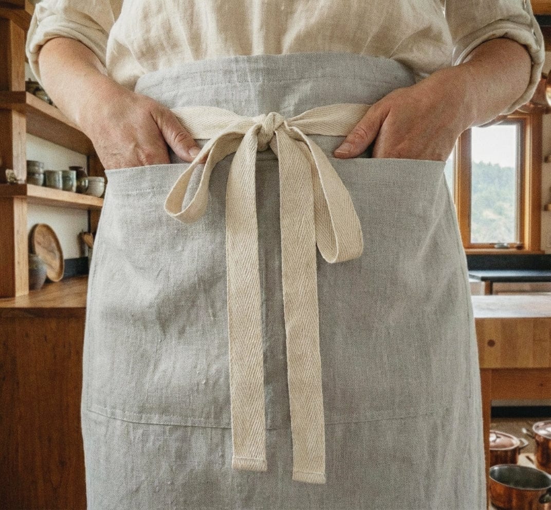 Our classic Belgian waiter's apron in strong, midweight 100% European linen. We make quite a lot of these classic waist aprons for restaurants, and we offer the same rugged quality and handsome good looks to you.