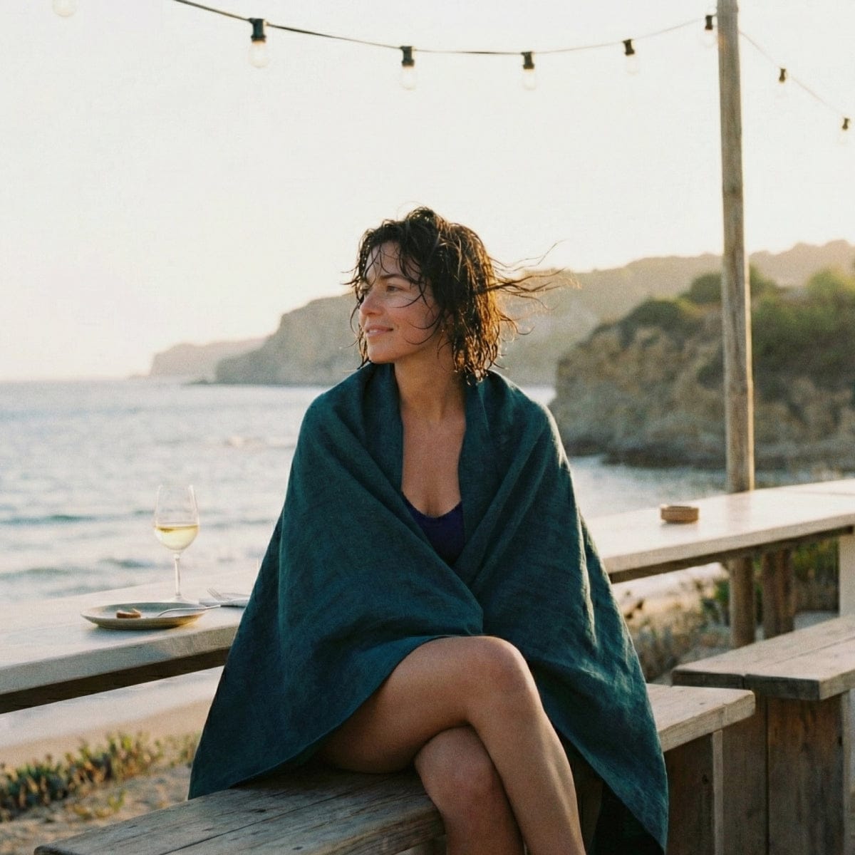 It’s a perfect weight for single use when a bit chilly or layered with a cashmere throw on colder winter days. Love all of my Rough Linen items!